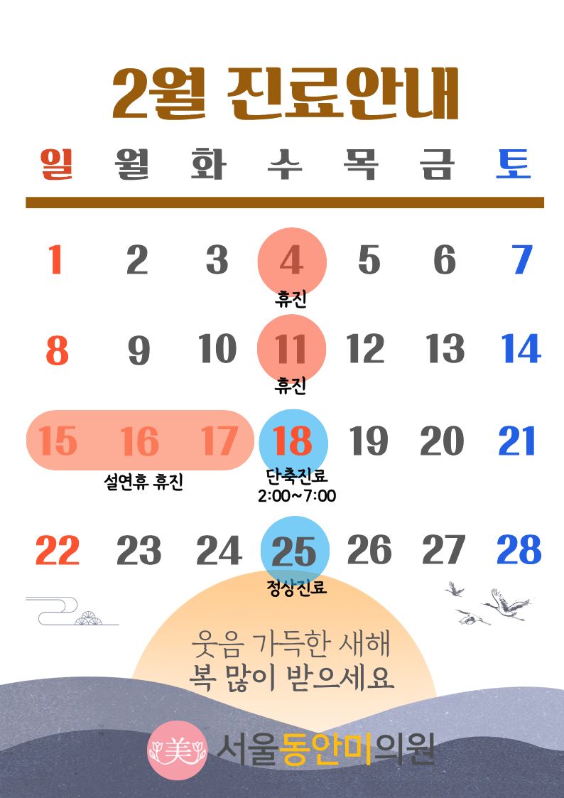 *25년 12월 24,31일 수요일은 정상진료 합니다(12월25일 휴진으로 정상진료, 26/1/1 신정 휴진으로 정상진료)
